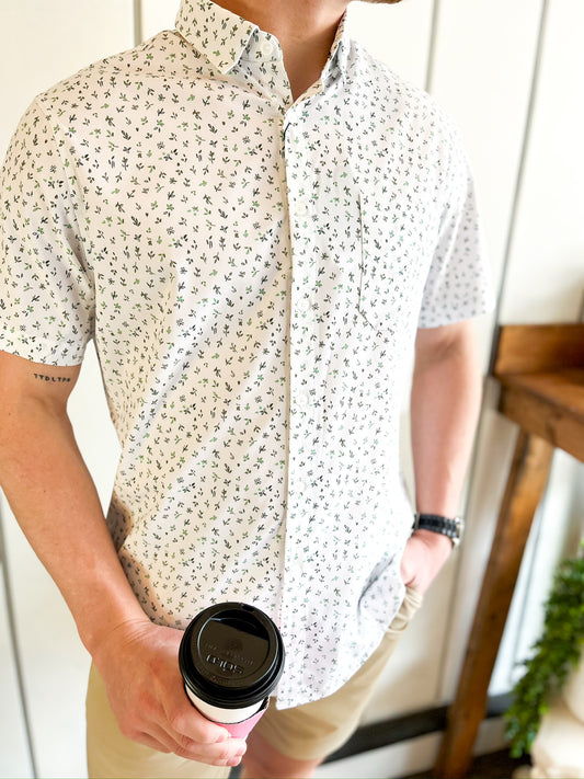 Sold outLeeward SS - White Floral + Fauna