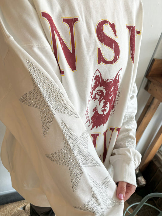 Northern State Wynn Star Sleeve OS Fleece Crew - White