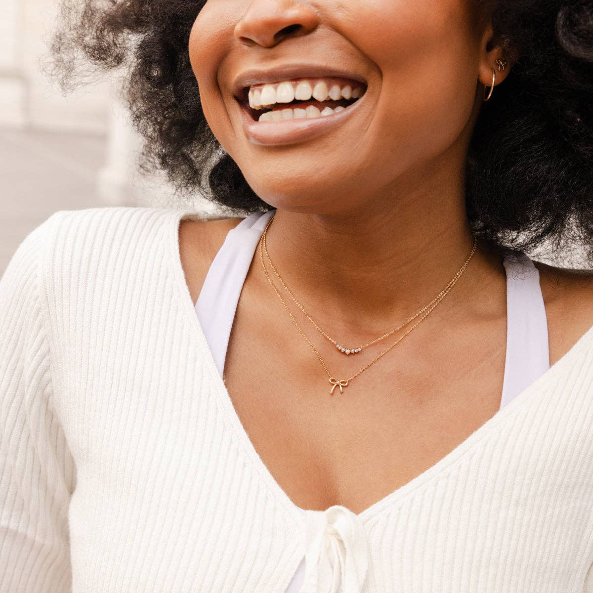 Stay true to your ties with this dainty necklace. Featuring a ribbon bow silhouette, this finishing flourish is a sweet reminder that even the simplest moments can be the ones that secure a forever kind of bond.