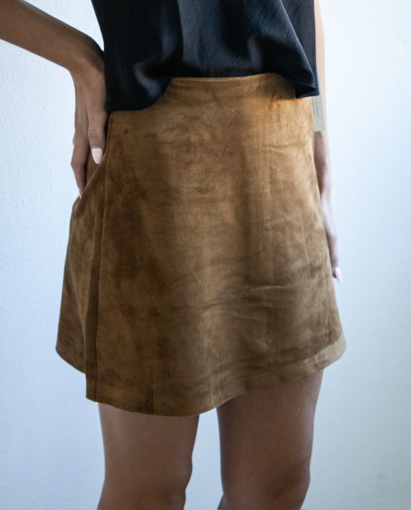 Buttery soft, perfectly tailored. This faux suede mini hugs just right with a clean zip-back design, made to pair with your coziest sweaters and favorite boots.