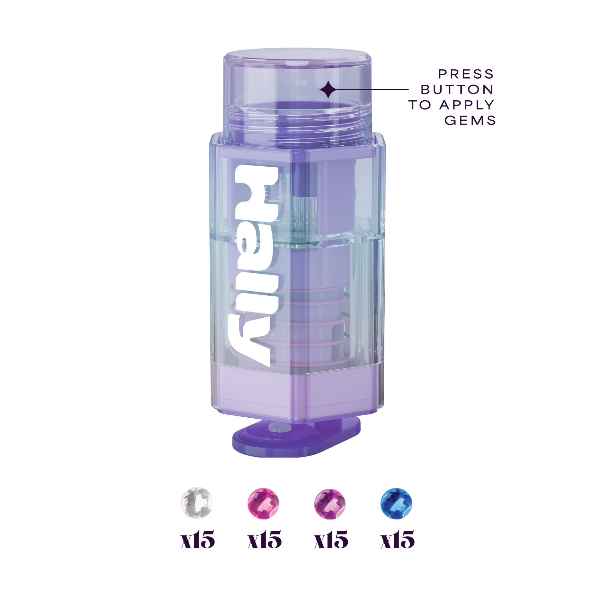 This set includes 1 hair gem styling tool and 60 gems in a variety of colors.