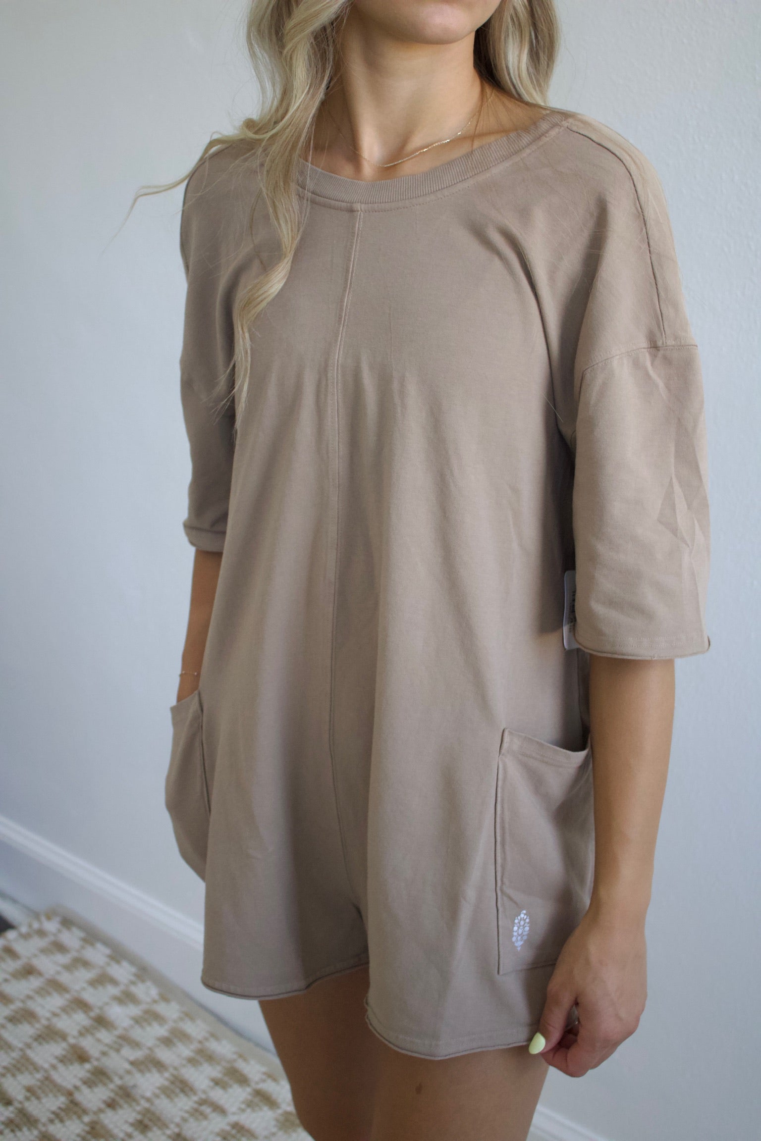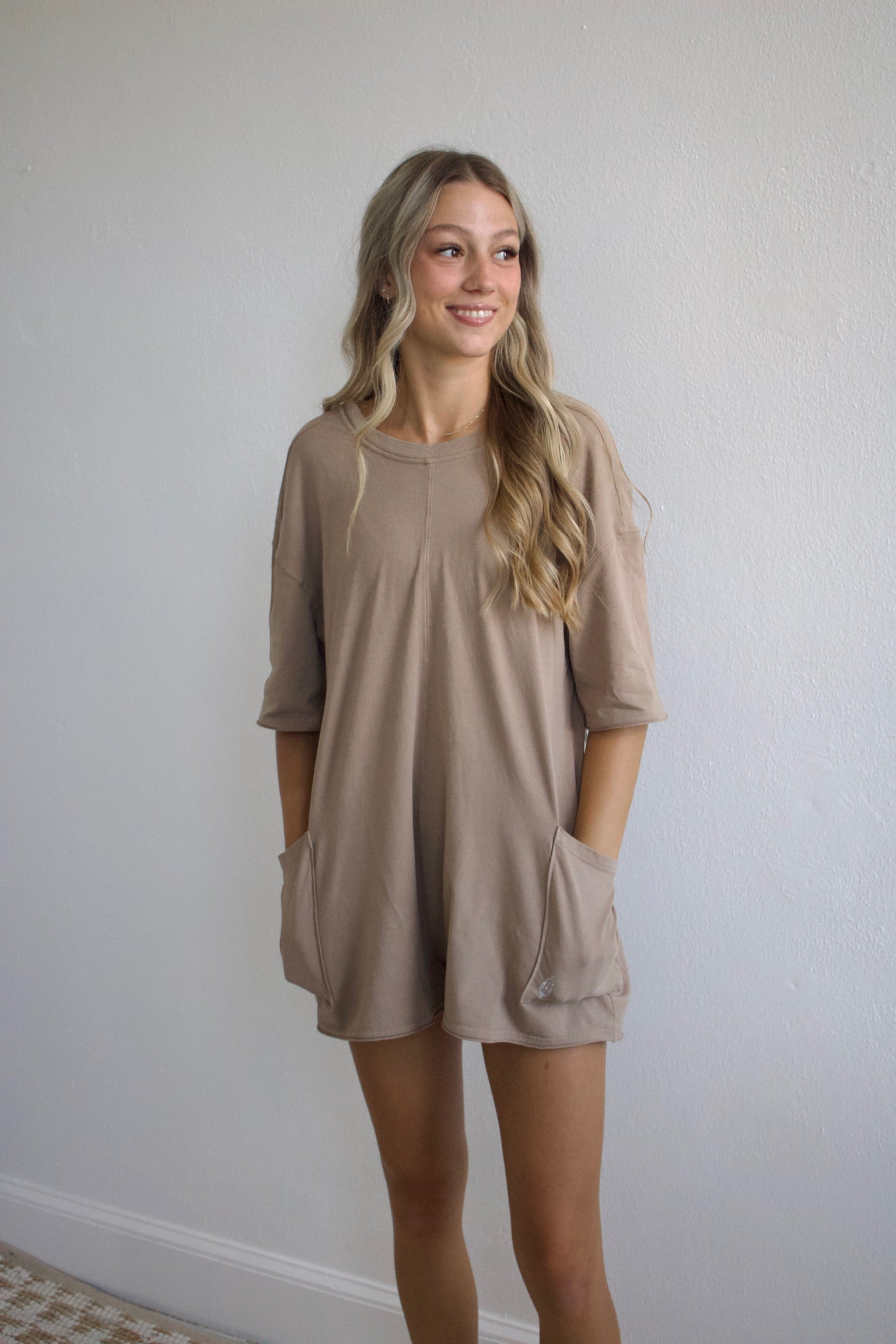 A new addition to our fan-favorite Hot Shot collection, this soft romper is featured in an oversized fit and shapeless silhouette with pockets at the front and V-shaped back detail.