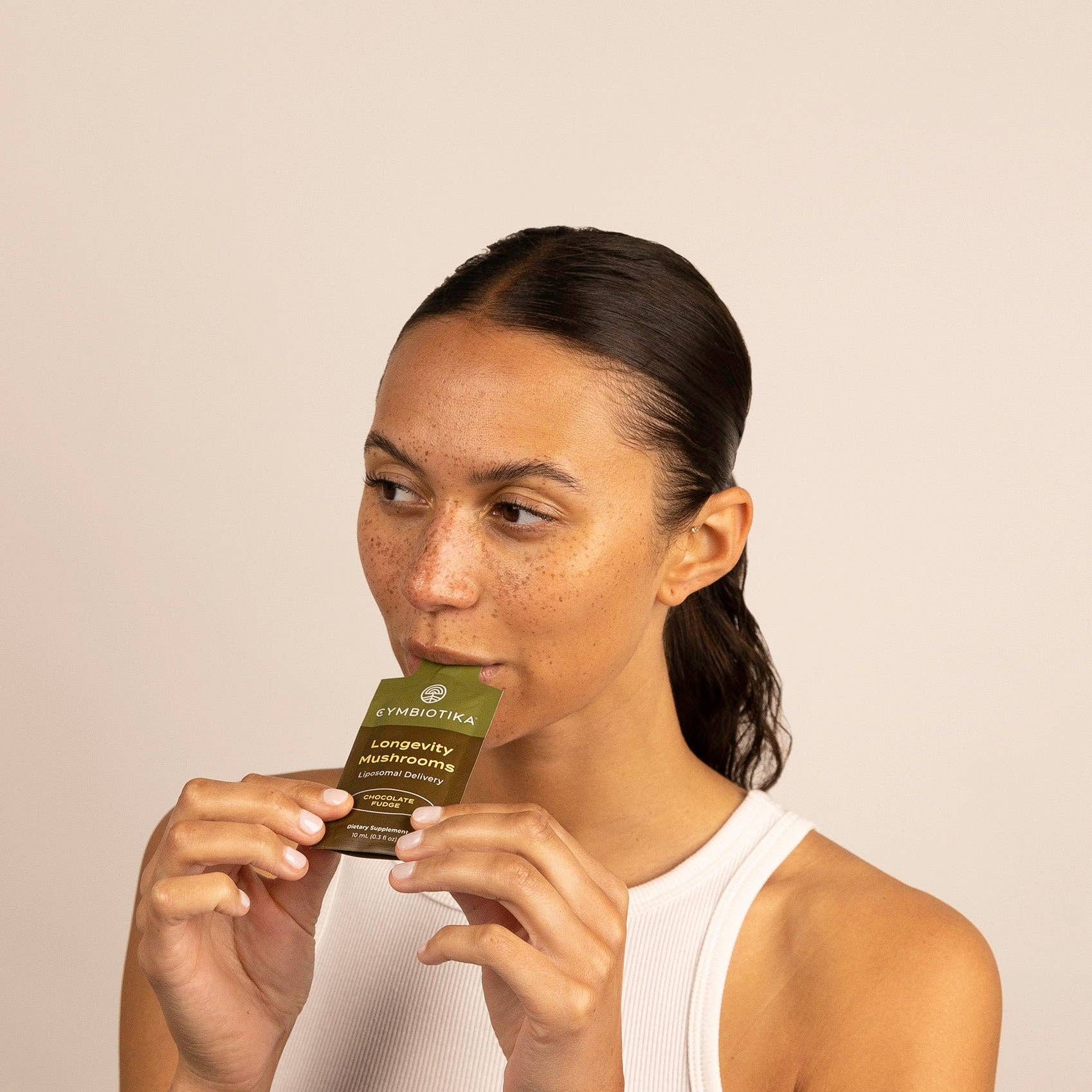 Cymbiotika’s Longevity Mushrooms contain 6 organic mushrooms with clinically proven benefits. Mushrooms are nutrient-dense foods that contain powerful compounds such as beta-glucans, triterpenes, metabolites, L-Ergothioneine, vitamin D, prebiotics, digestive enzymes, chelated minerals, amino acids, proteins, and b-vitamins. This array of complex nutrients contributes to overall health and immune support function.