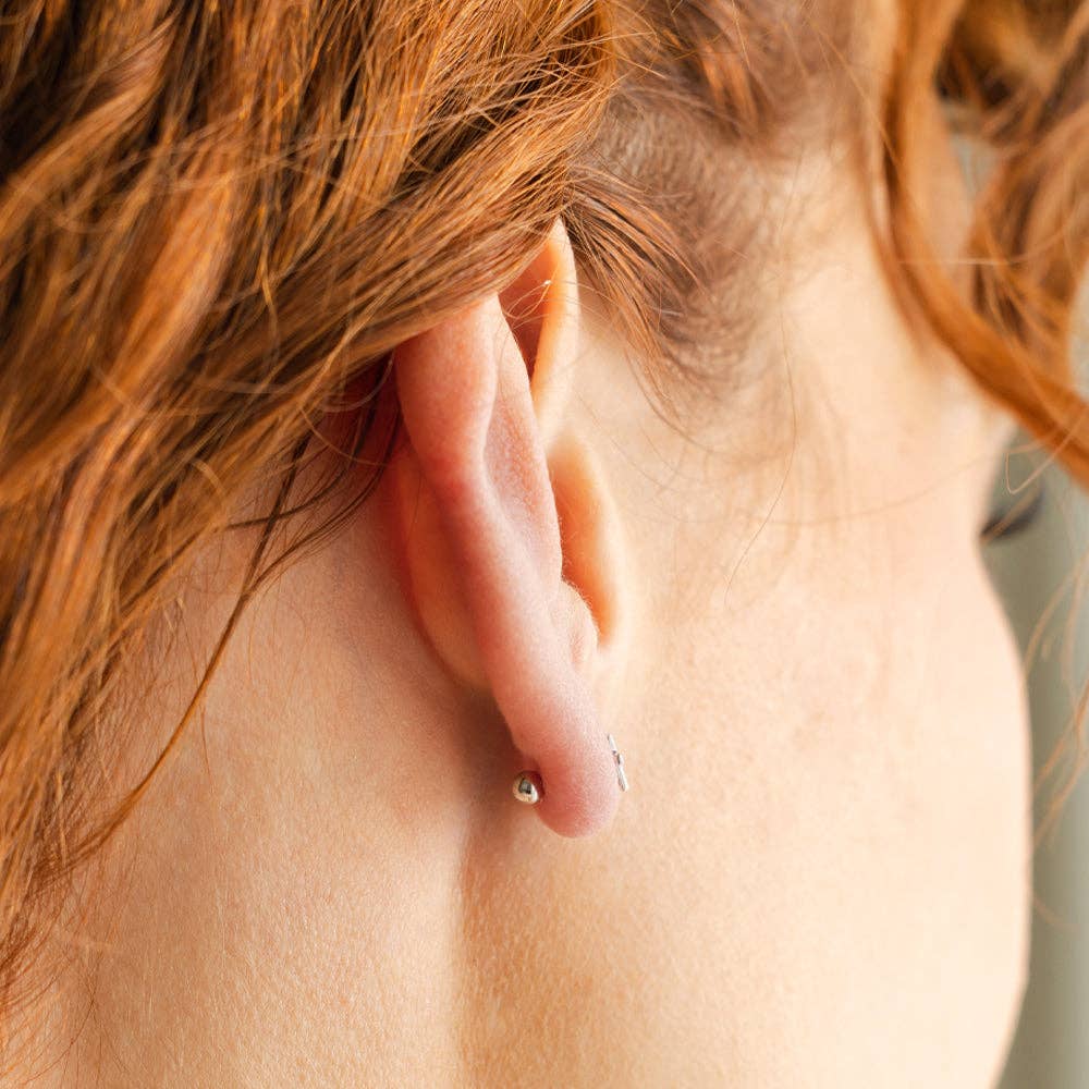 Reimagine your routine with a pair of earrings that show off your adventurous side. Each lightweight stud features a shorter post length and a screw-on ball-style back so you can fix it and forget it for comfortable, long-term wear. Exchange the snags and pokes of traditional earring backs for a style that is cartilage and lobe friendly, headphone ready, and nap approved. Live loudly and sleep soundly– because these ultra versatile studs are made to meet the moment.