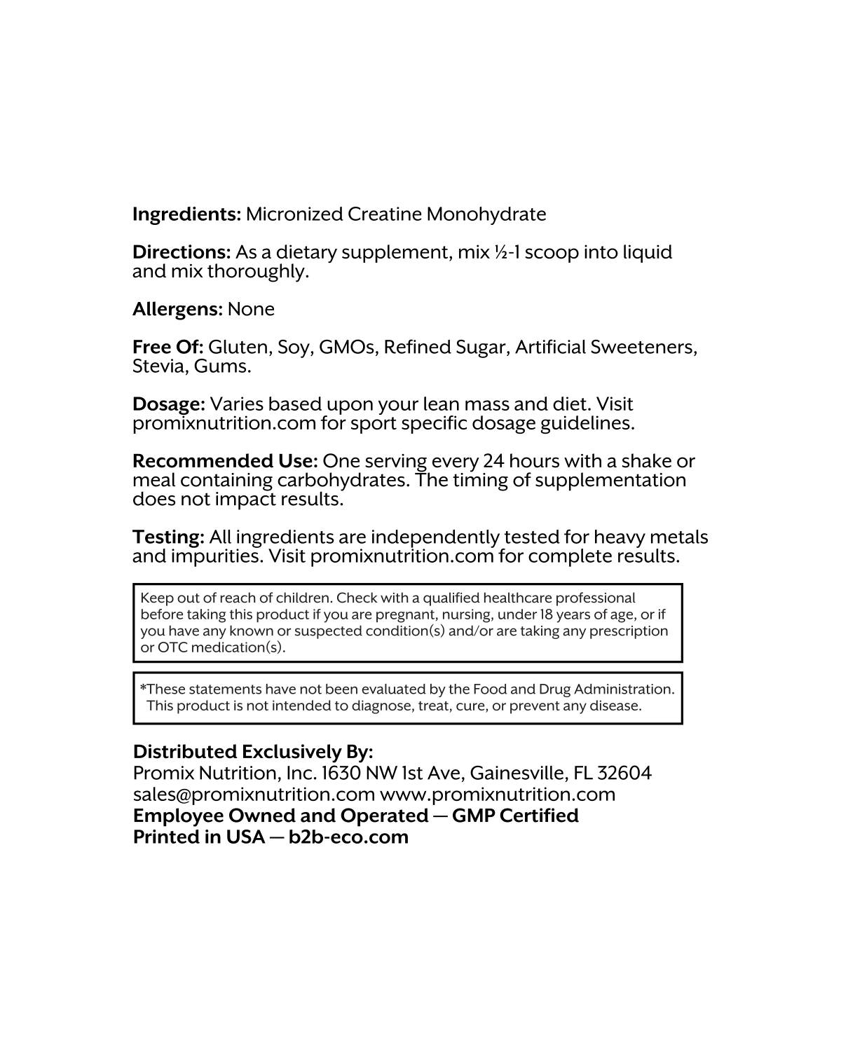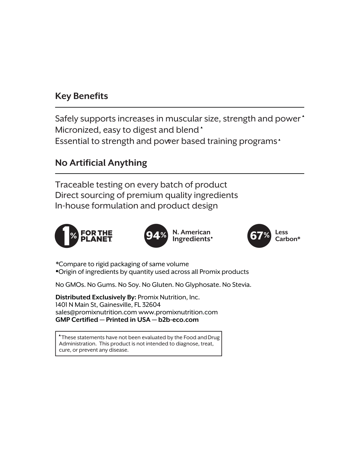 * 100% non-GMO micronized creatine