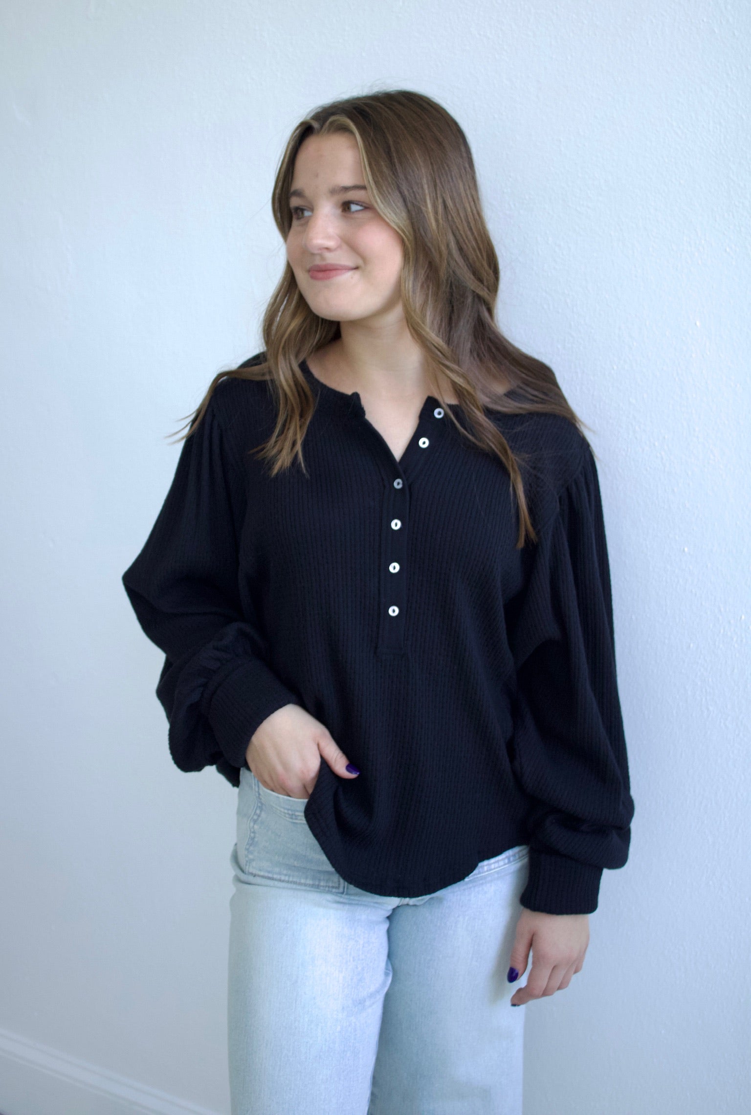 Voluminous sleeves instantly elevate this knit henley from We The Free, giving it that crafty detail you can only find here.