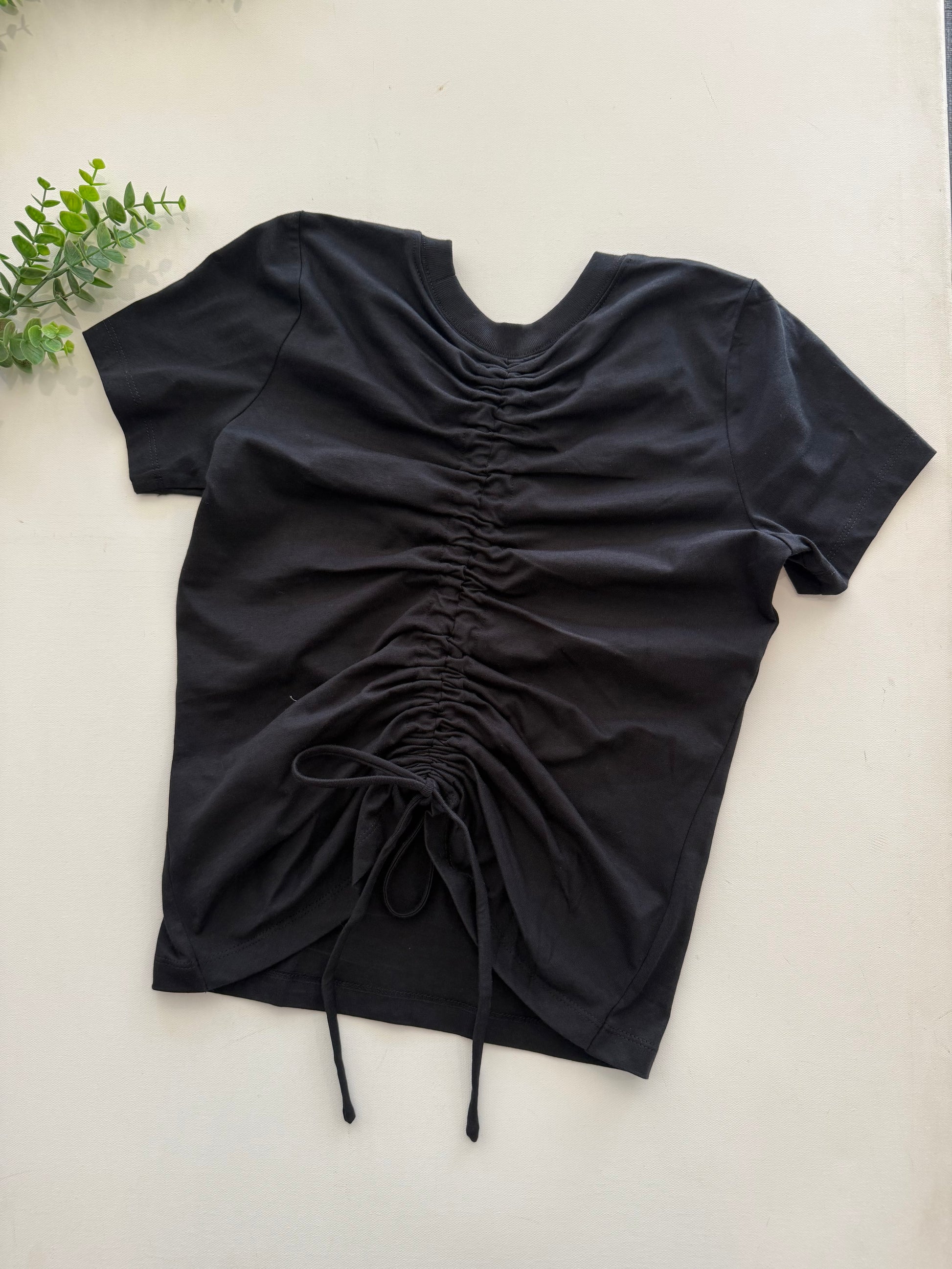 The Soul Ties tee is a short-sleeved T-shirt with a ruched back tee — an everyday basic, elevated.