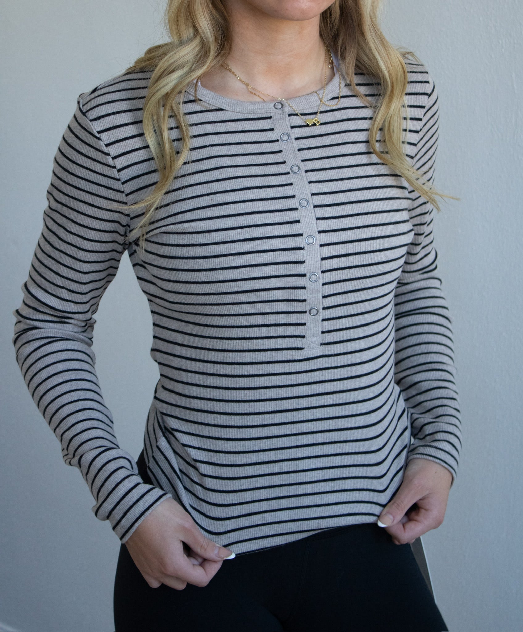 Stella Stripe Henley - Heather Taupe