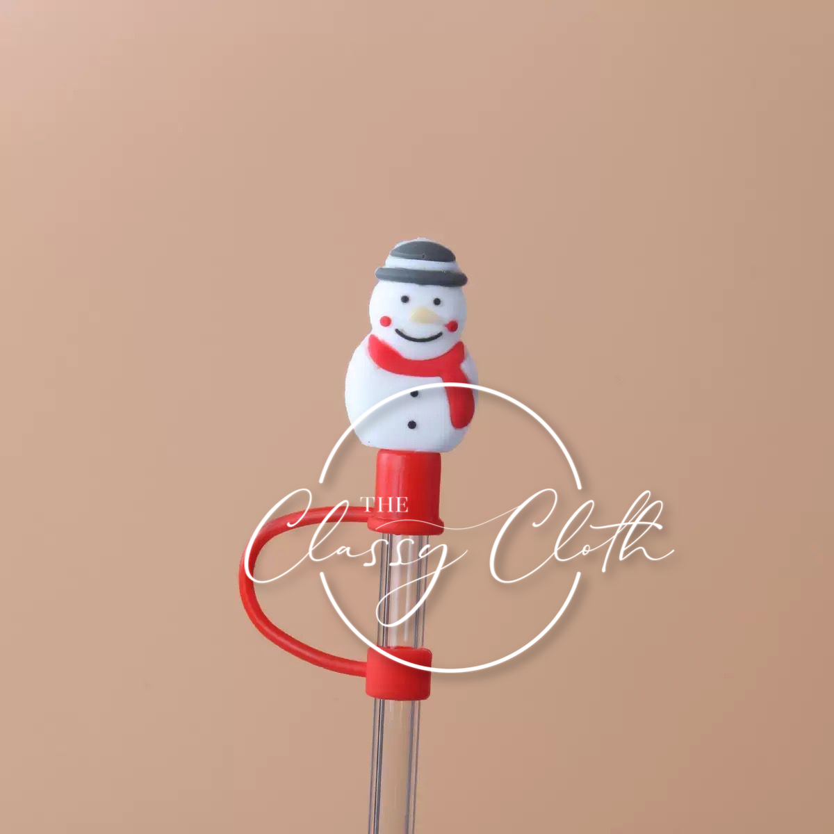 Tumbler Straw Toppers - White Snowman/Red Scarf