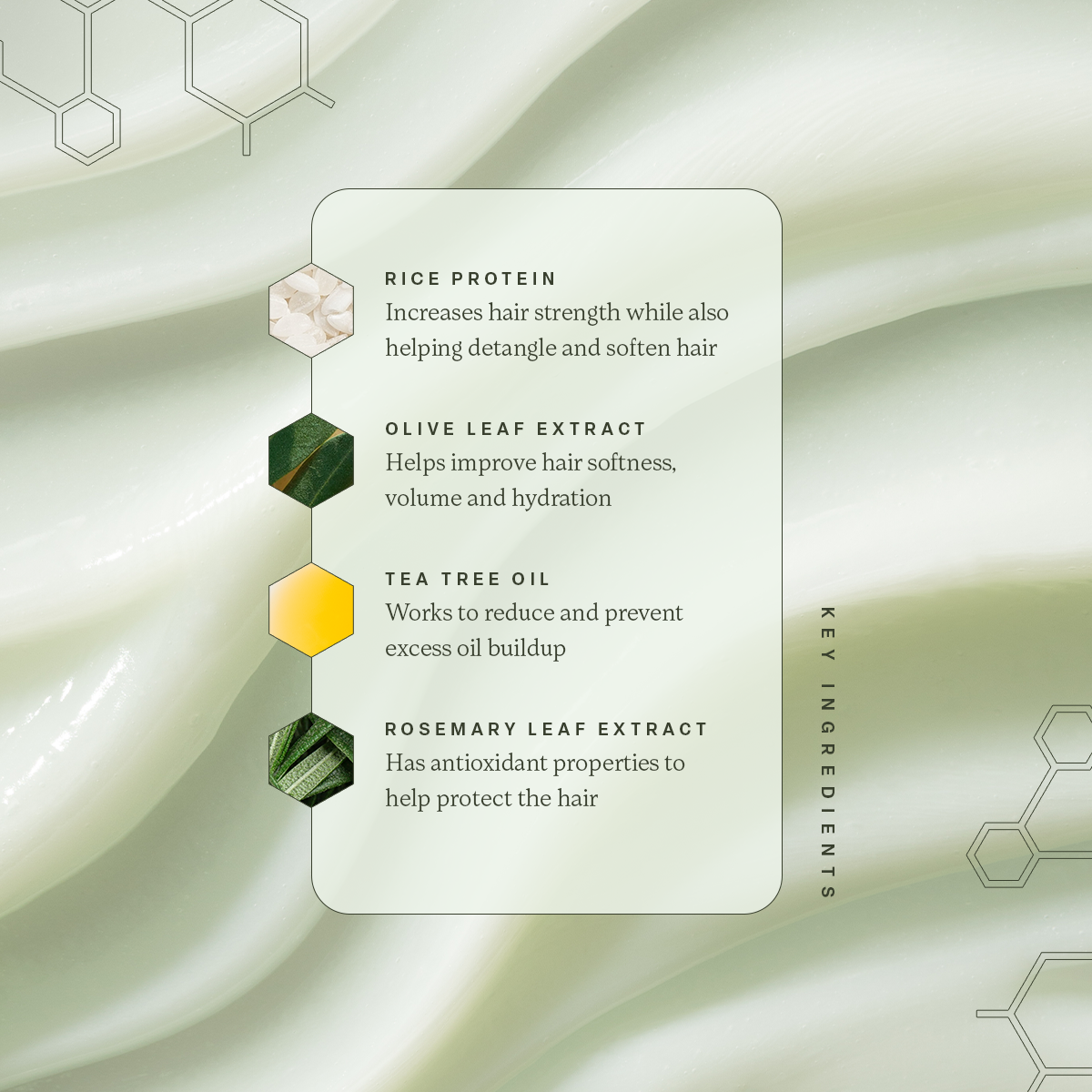 -Blend of Rice Protein and Plant Extracts: Increases hair strength while also providing conditioning properties.