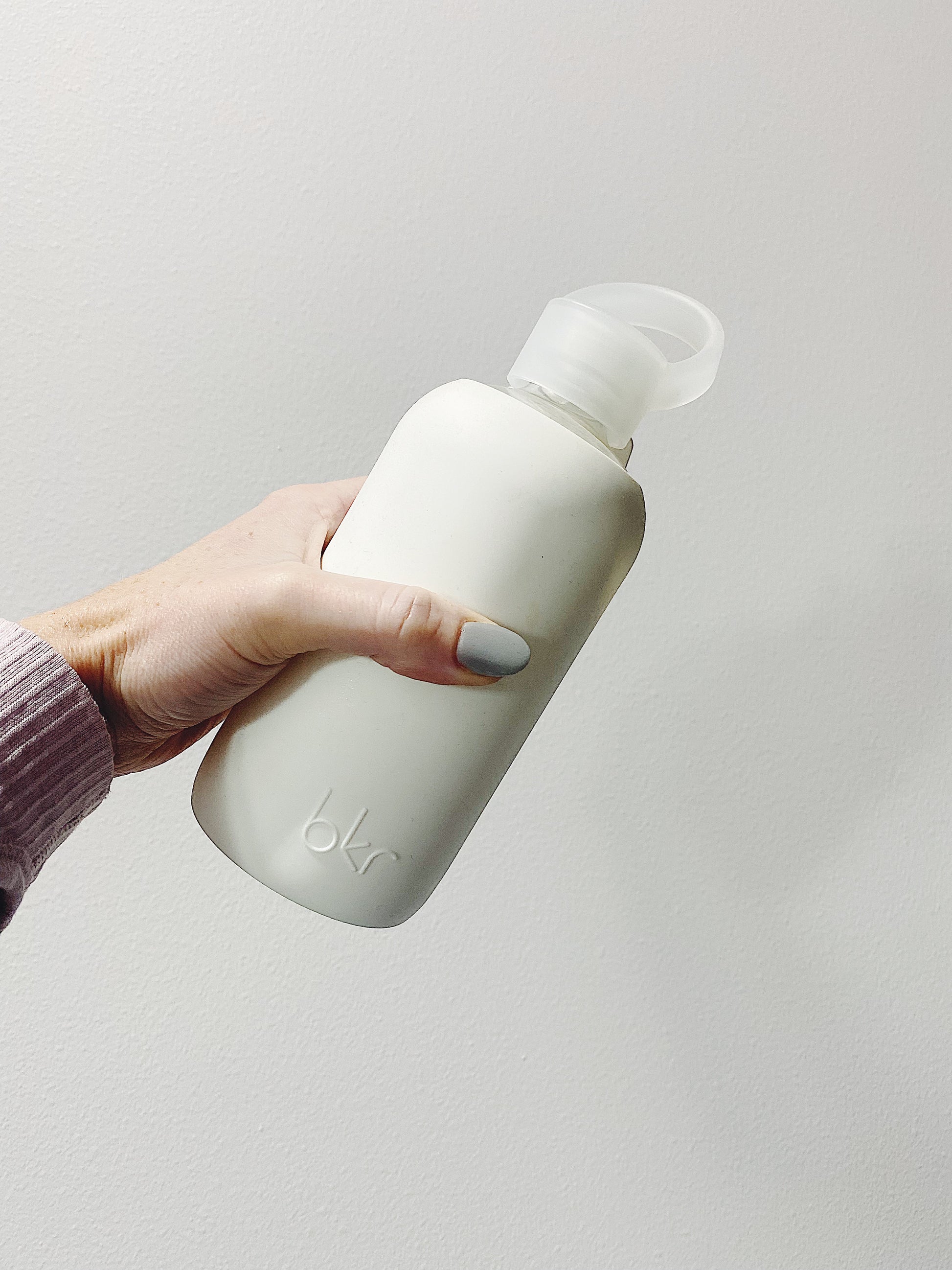 A 500ML Glass And Silicone Water Bottle In Opaque White. Shop Now.